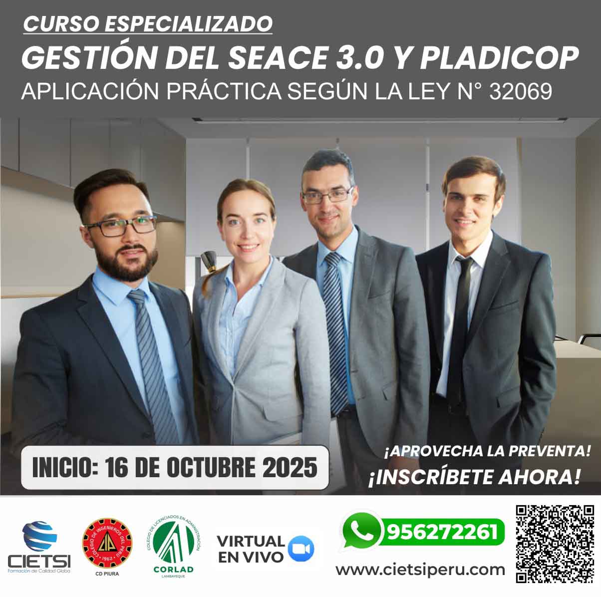 CURSO ESPECIALIZADO GESTIÓN DEL SEACE 3.0 Y PLADICOP