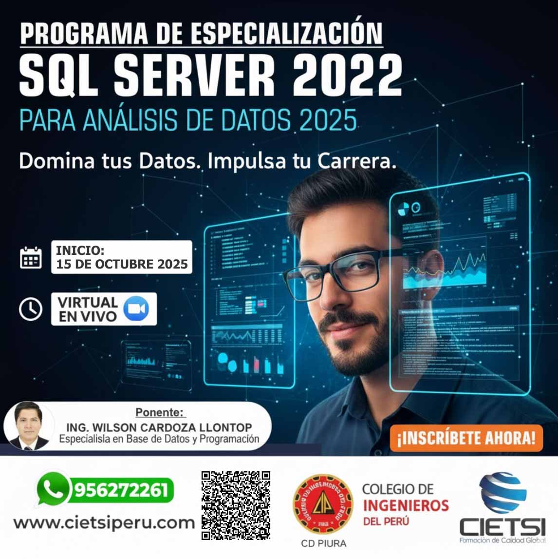+ En caso no pueda registrarse, puedes contactarnos al Celular/WhatsApp: 956272261 (https://bit.ly/SqlServerDAwsp)